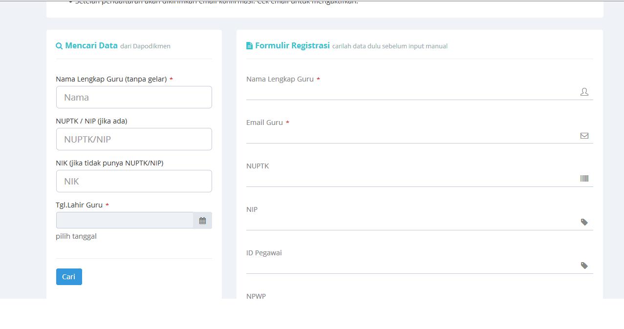 - Untuk guru yang sudah punya NUPTK, cukup mengisi kolom NUPTK dan tanggal lahir.